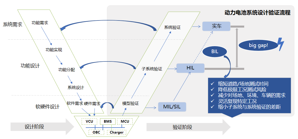 傳統(tǒng)面向信號級的HIL測試,在BMS功能策略驗證層面已經(jīng)很完善了,但是電池包性能驗證能力嚴(yán)重不足,這套BIL(Battery In Loop)測試解決方案針對的就是這個問題,該方案以提升客戶電池包性能試驗的真實性、可靠性為設(shè)計指導(dǎo),利用仿真與試驗聯(lián)合的方式進(jìn)行,能夠彌補實車的道路/場地測試測試工況覆蓋面太窄的問題,其測試結(jié)果對解決實車測試在極限工況、危險工況下失效的難題也有一定的借鑒意義,填補了HIL測試到實車道路/場地測試之間的測試空白。