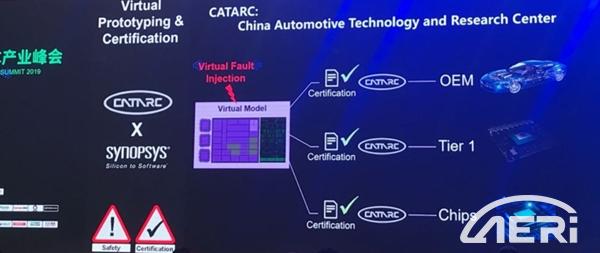 此次峰會上,中汽中心汽車工程研究院(以下簡稱“工程院”)與美國新思科技公司達成一致,將在智能汽車電子電氣虛擬原型開發(fā)方面開展戰(zhàn)略合作。美國新思科技是目前全球排名第一的芯片自動化設(shè)計解決方案提供商,同時也是全球排名第一的芯片接口IP供應(yīng)商。工程院則在車輛功能安全和電子電氣開發(fā)及測試領(lǐng)域已有近十年的技術(shù)積累。工程院未來將采用新思科技公司的工具,利用虛擬原型開發(fā)技術(shù)使芯片、電路及元器件通過數(shù)字建模實現(xiàn)虛擬開發(fā)環(huán)境,從而幫助車企提前6到9個月啟動軟件開發(fā)。除此之外,還能通過模擬在真實環(huán)境中很難呈現(xiàn)的各類軟硬件故障,為功能安全認(rèn)證提供更為可靠、全面的測試和驗證手段。